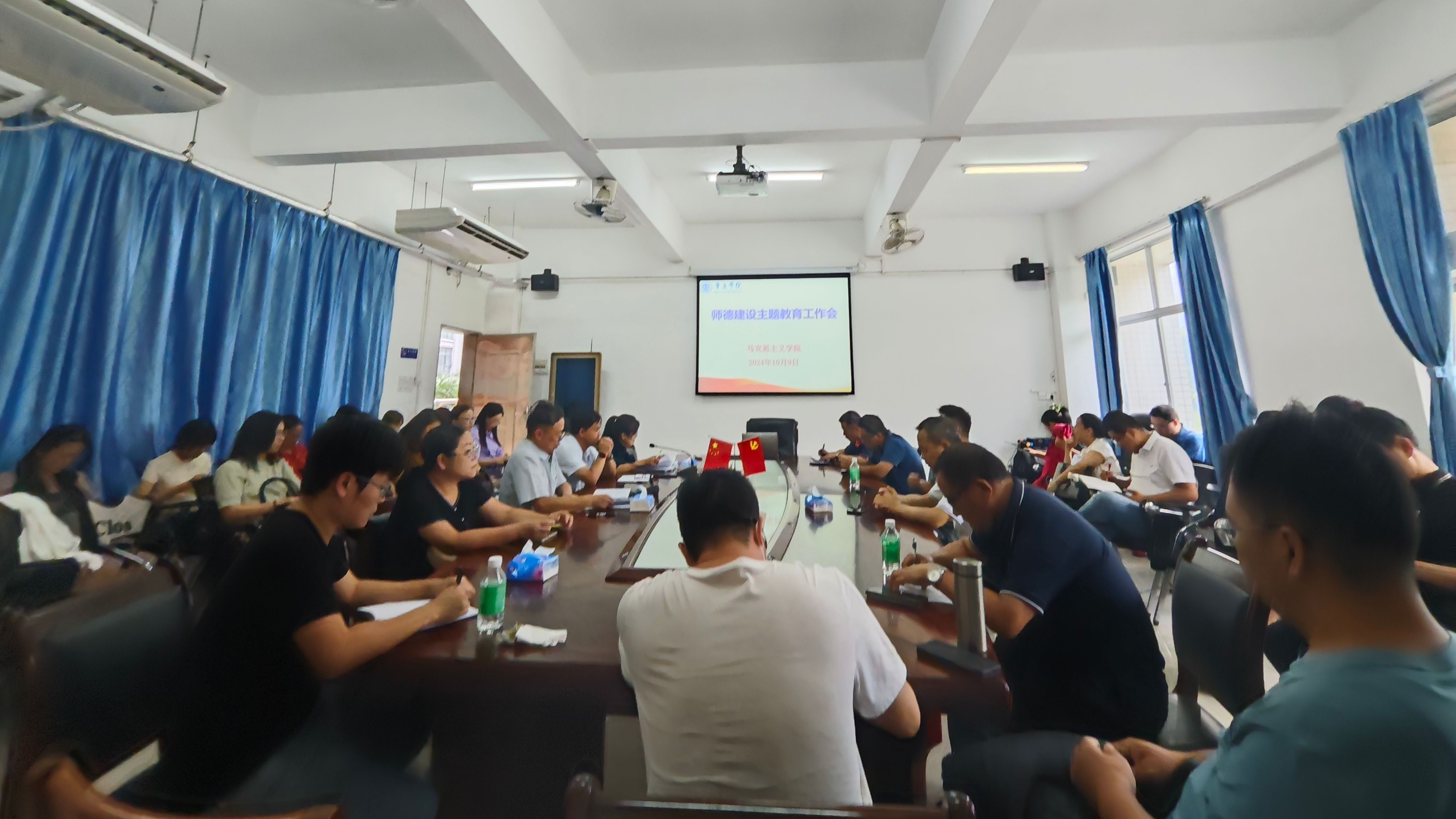 本网讯 10月9日,马克思主义学院召开师德建设主题教育会。学院领导班子以及全体教师参加了此次会议。学院党委书记侯玉基主持。