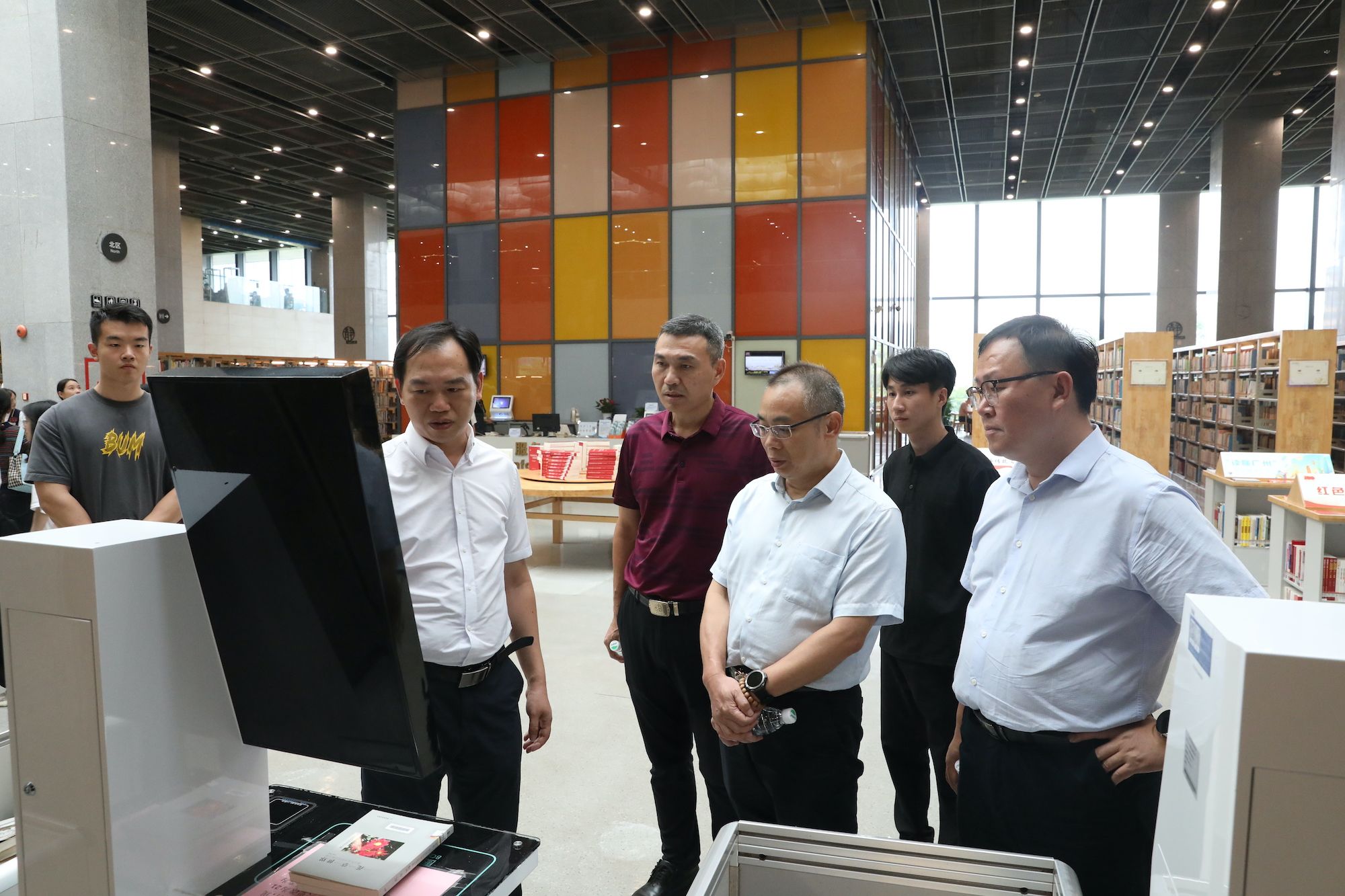 本网讯 9月26日,为深化图书馆(档案馆)数字化建设的探索步伐与应用实践,图书馆(档案馆)领导班子及各部门主任一行11人赴广东拓迪智能科技有限公司(以下简称“广东拓迪”)与广州市黄埔区图书馆总馆(香雪馆)(以下简称“香雪馆”)开展实地调研与学习交流。