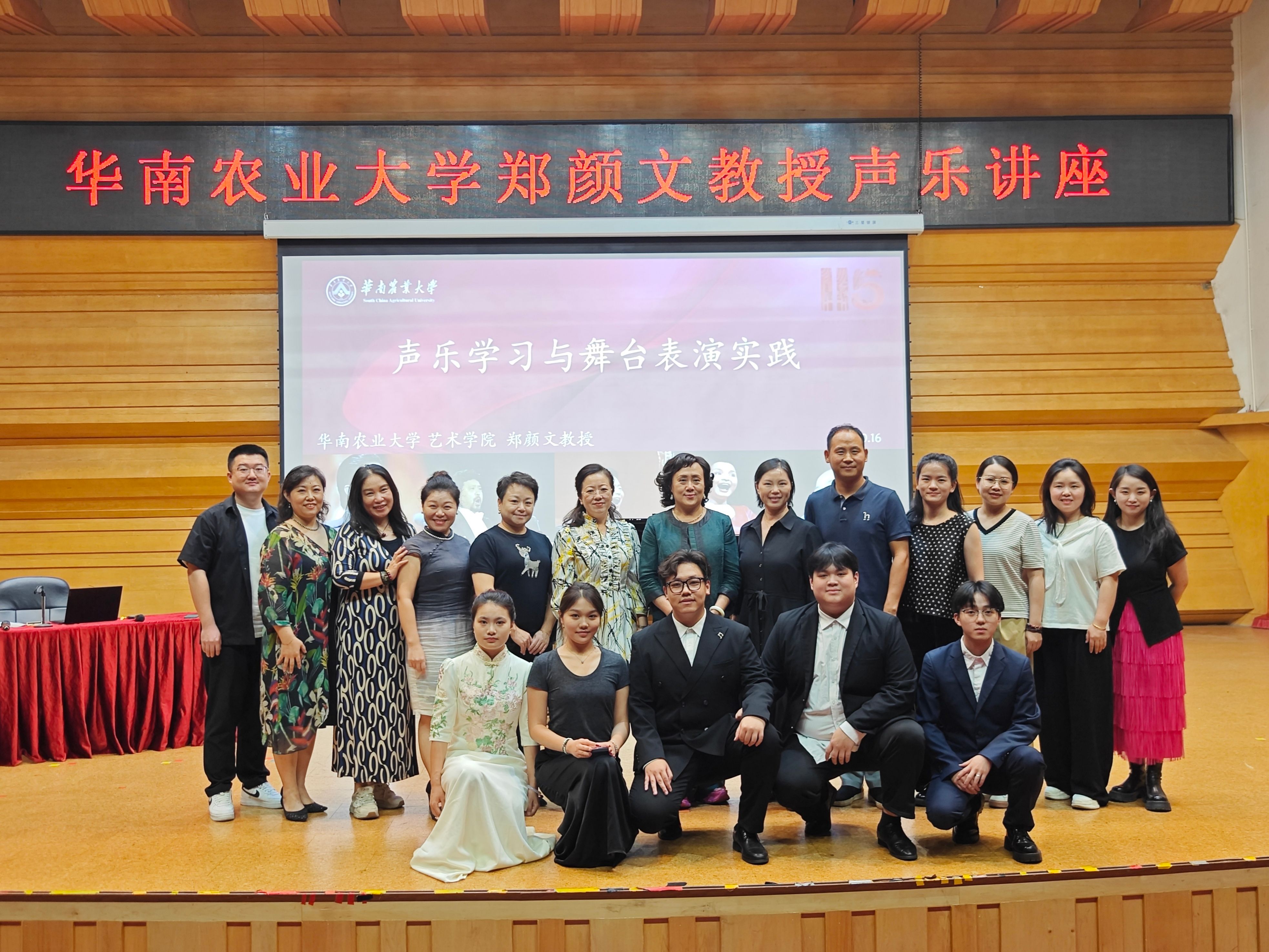 本网讯 10月16日,女高音歌唱家、华南农业大学艺术学院音乐表演专业主任、学科带头人、硕士生导师郑颜文教授受邀为音乐学院师生带来《声乐学习与舞台表演实践》专题讲座。
