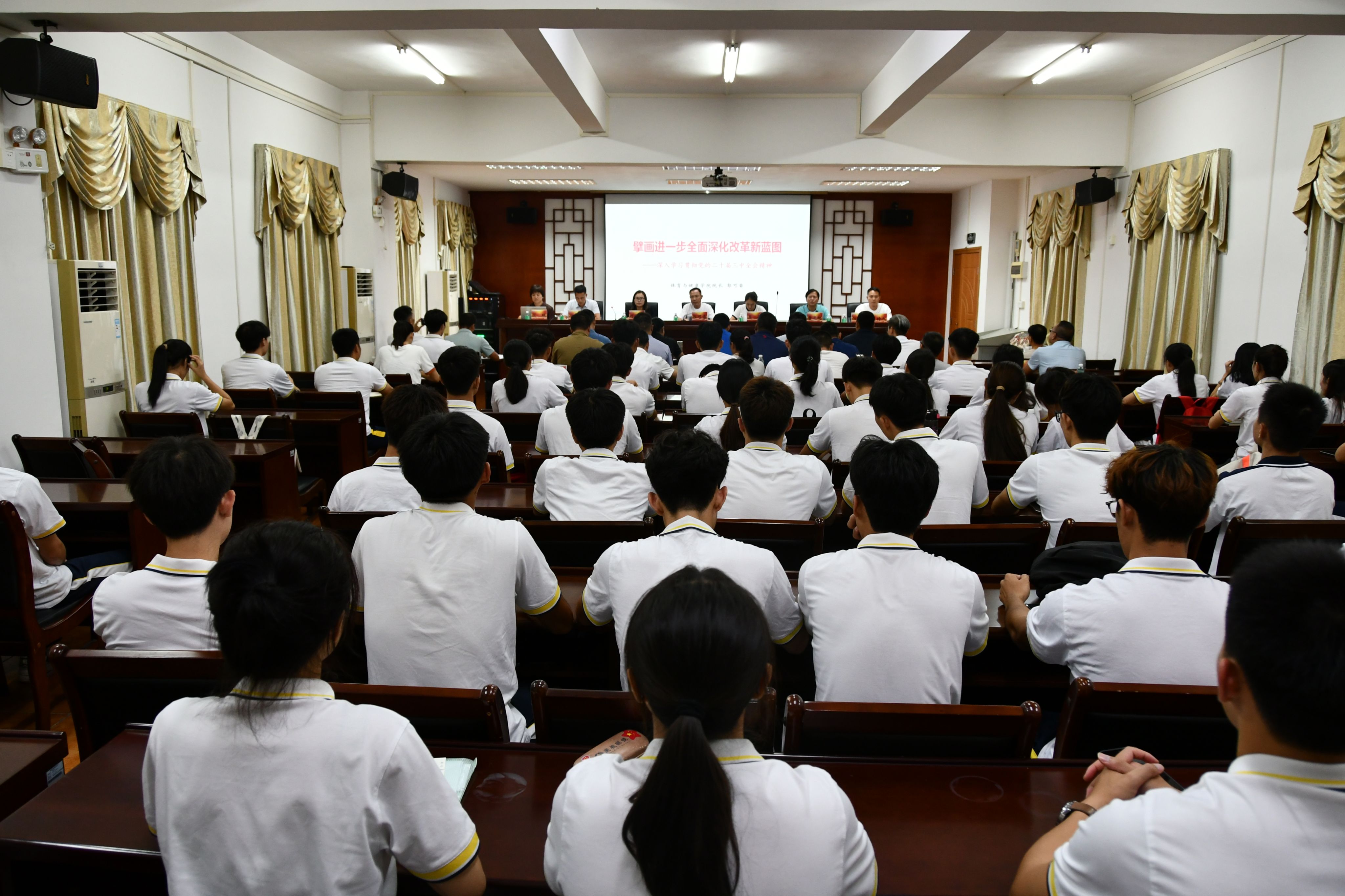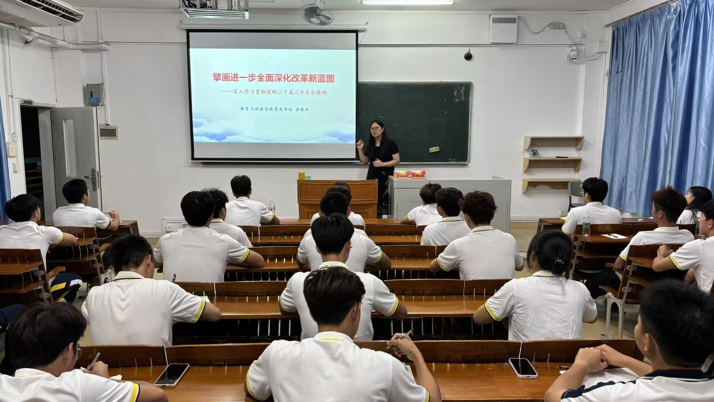 梁艳红以《擘画进一步全面深化改革新蓝图——深入学习贯彻党的二十届三中全会精神》为题,为参加体育学院2024年下半年入党积极分子培训班的37名学员讲授“思政第一课”。她指出,在国家、社会都对教育无比重视的大环境下,各位有志于成为人民教师的入党积极分子更要努力学习专业知识和运动技能,通过参加体测服务队、体能训练营等形式锤炼服务风险精神,并结合《必赢242net官网纵向帮扶肇庆市、云浮市“三所学校”和县中质量提升工作实施方案》,在参与“青年突击队”的过程中助力基础教育城乡一体化发展,努力成长为对学校、对社会有用的人才,未来到工作岗位上创造人生价值。