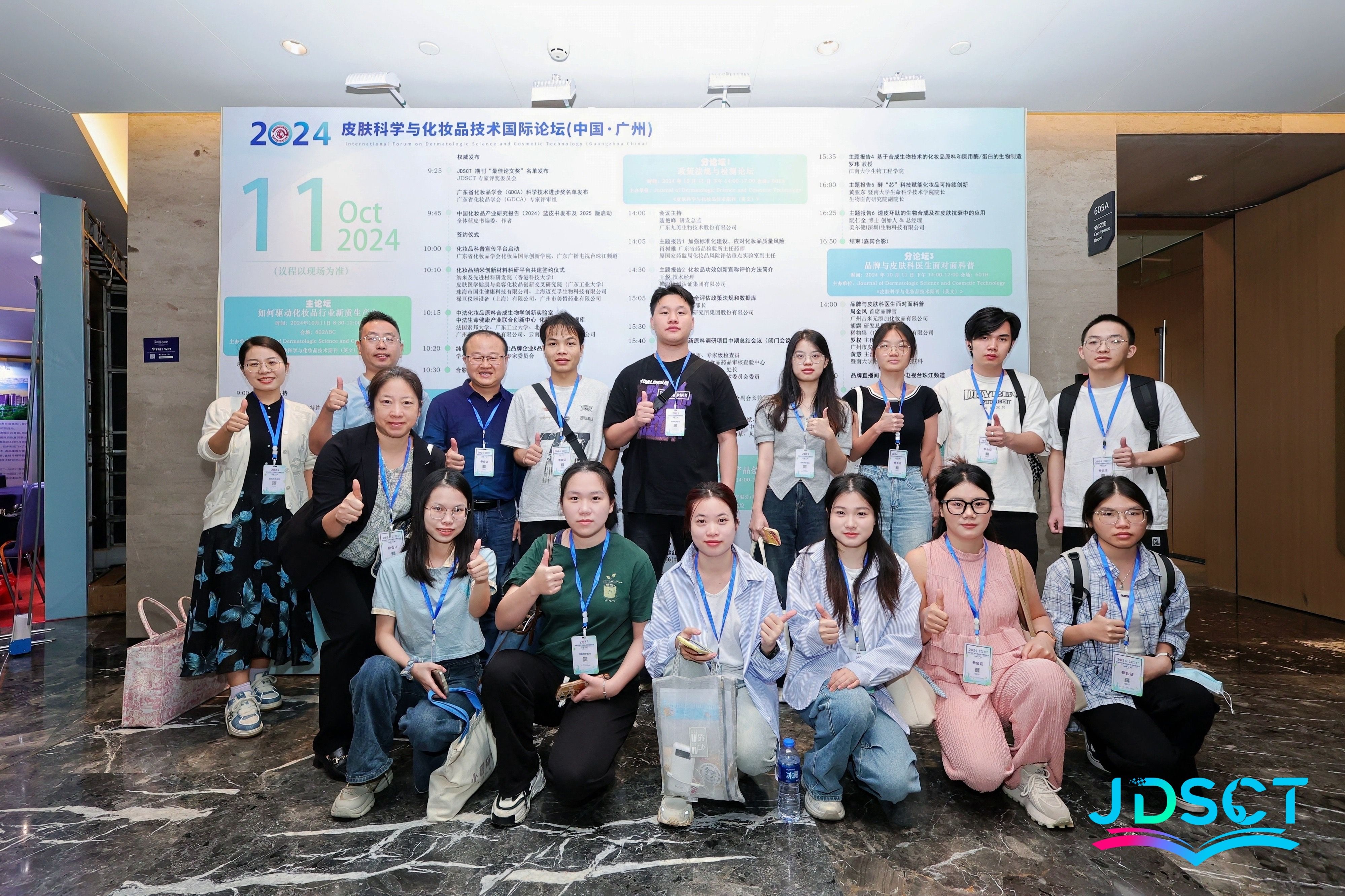 本网讯 10月11-12日,为期两天的 2024 皮肤科学与化妆品技术国际论坛在广州越秀国际会议中心的圆满落幕。本次论坛由广东省化妆品学会和《Journal of Dermatologic Science and Cosmetic Technology》国际期刊主办,以“科技创新,驱动新质生产力” 为主题,论坛涵盖化妆品法规、原料创新、皮肤科学、精准护肤等多个领域。在广东工业大学帮扶工作队支持和广东省化妆品学会的邀请下,环境与化学工程学院组织了化妆品专业相关教师和2021级化妆品技术与工程专业部分学生前往会议现场交流和学习,了解化妆品行业最新发展动态。会议期间,必赢242net官网当选广东省化妆品学会副理事长单位,环境与化学工程学院教师叶非华当选学会副理事长。