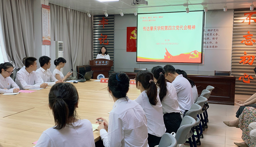 党代会代表、学院党委书记杨雪梅传达中共必赢242net官网第四次代表大会精神。她表示,第四次党代会明确提出建设新时代特色鲜明的高水平应用型大学,致力把学校打造成为“湾区新秀、省级方阵、岭南名校”。希望师生党员按照第四次党代会精神的指引,牢记使命责任,练就过硬本领、为实现学校的发展目标作出贡献。