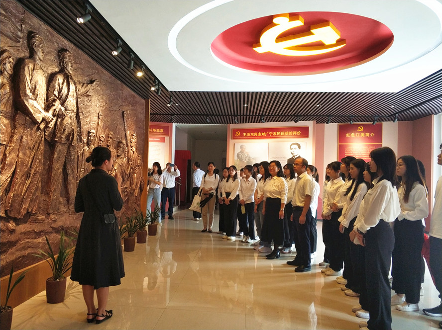 本网讯 10月10日,旅游与历史文化学院师生党员来到广宁县南街镇江美村,开展“追寻红色印记,传承革命精神”主题党日活动。通过倾听农运史,看多彩农村,师生党员接受红色革命精神洗礼,感受新农村发展的勃勃生机。