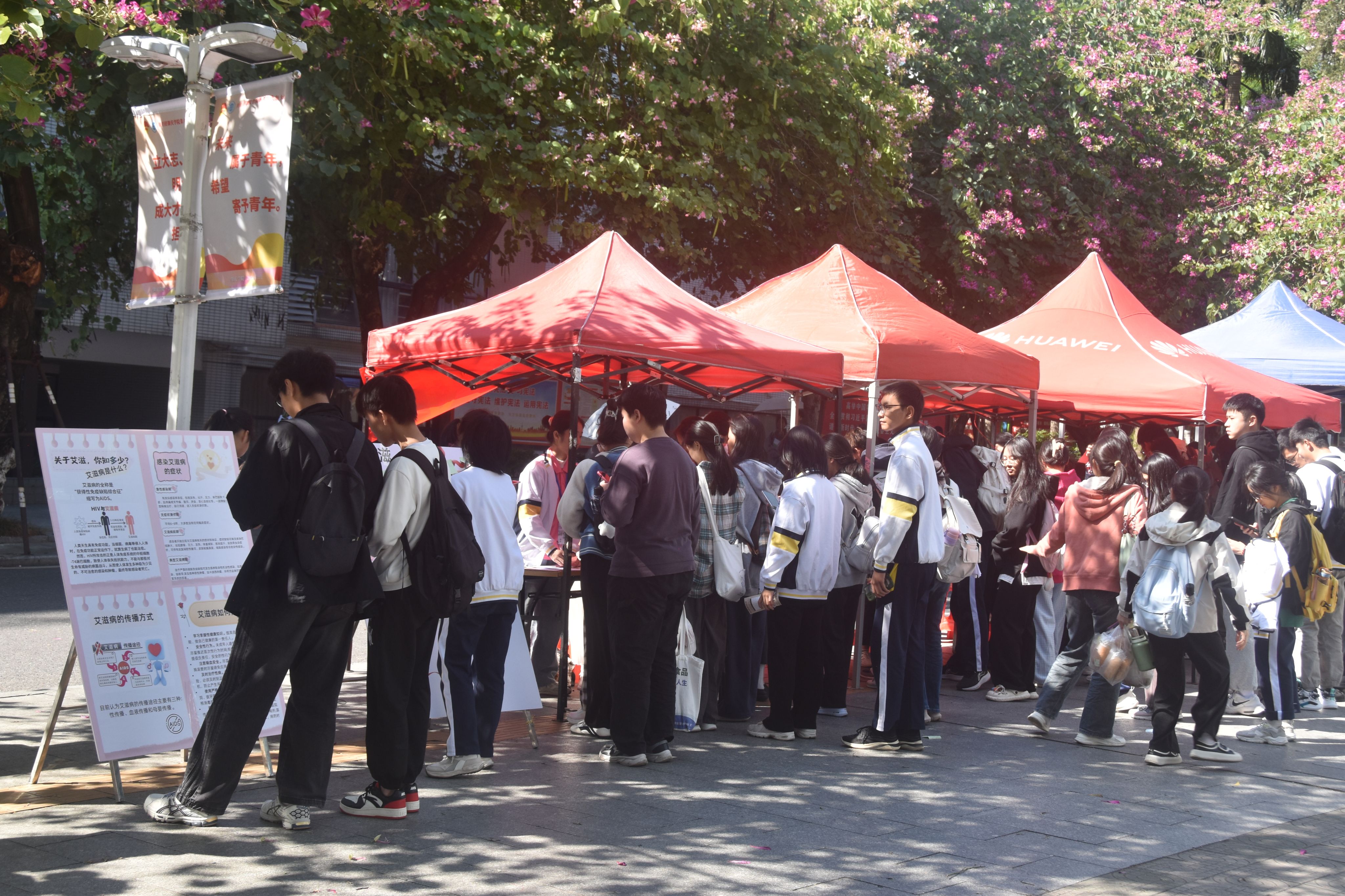 本网讯 2024年12月1日是第37个“世界艾滋病日”,为提高学生对艾滋病的认识,做好校园艾滋病宣传与预防工作。11月27日,校团委、学工部、校医院与中山大学附属第三医院肇庆医院共同组织举办“知艾防艾,携手抗艾”的艾滋病防治主题宣传活动。