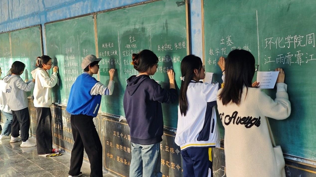 钢笔字比赛中,选手们须在15分钟内现场书写指定内容,字迹清晰、笔力遒劲,展现了良好的书法基础。简笔画比赛环节中,选手们根据文字提示迅速构思、现场作画,展现了创意与技艺的结合。粉笔字比赛则在板书长廊进行,选手们须在10分钟内完成作品,字形优美、结构严谨,体现了规范汉字书写能力。