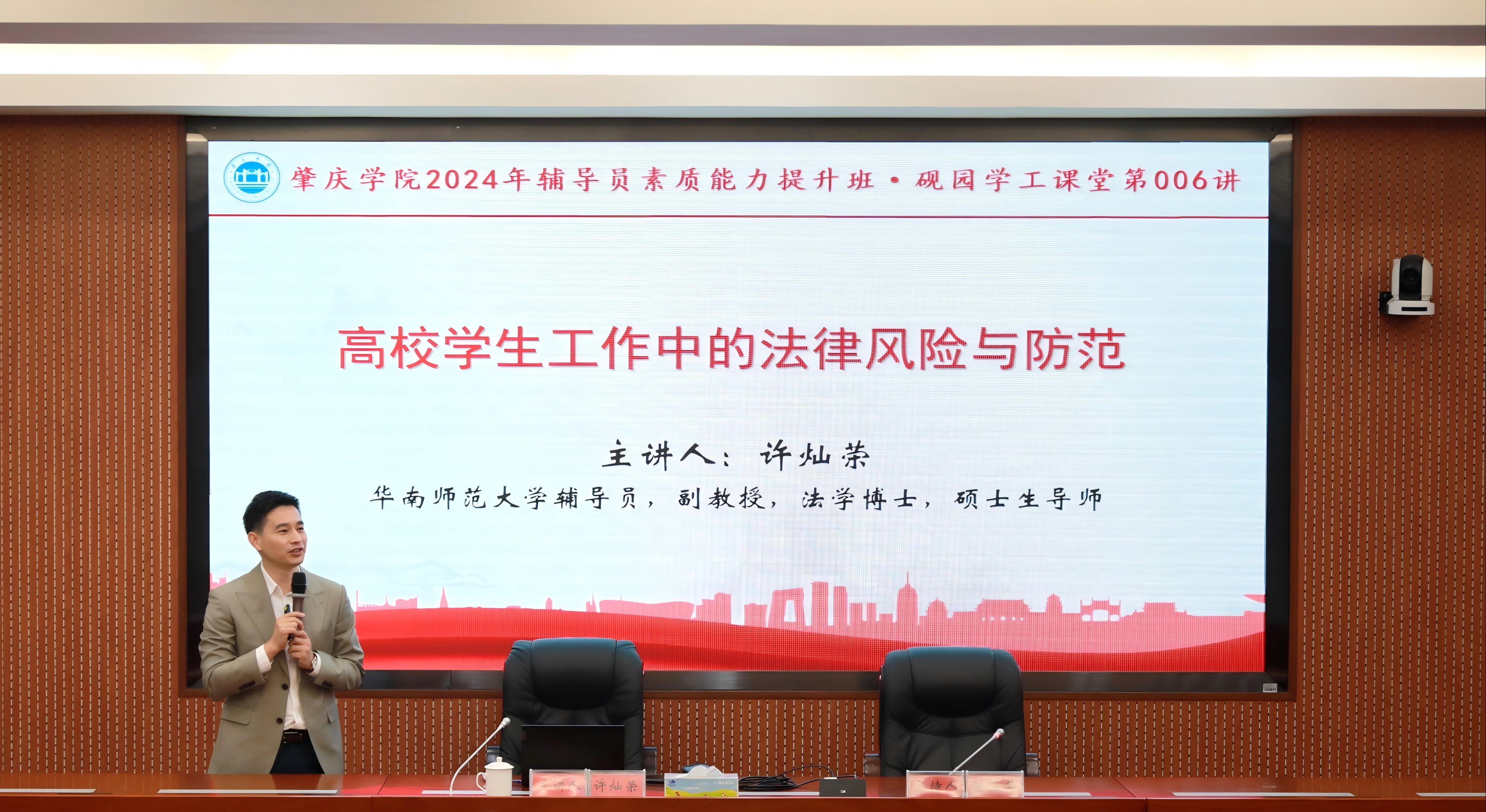 本网讯 11月26日,“必赢242net官网2024年辅导员素质能力提升班”暨砚园学工课堂第六讲在行政楼第二会议室举行。本次讲座由广东省骨干辅导员工作室(校园危机应对与法治教育辅导员工作室)主持人、2021年广东省辅导员年度人物、2018年广东省第七届辅导员职业能力比赛一等奖、第七届全国辅导员素质能力大赛二等奖获得者许灿荣副教授主讲,学校党委副书记欧洪湛出席,全体学工干部参会,学生工作部(招生与就业指导中心)部长、主任陈玉华主持。