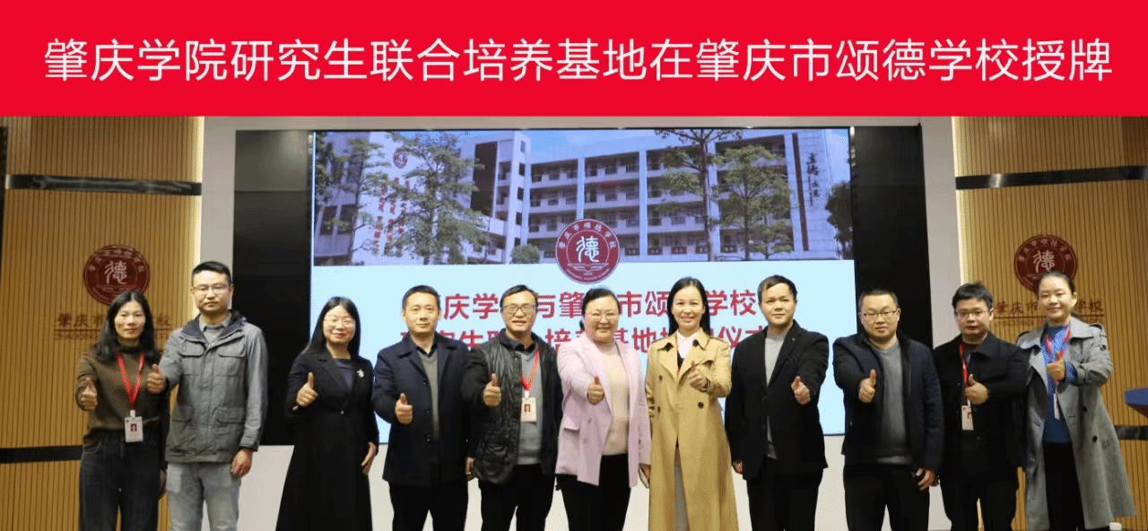 本网讯 为进一步提高我校研究生培养质量并深化产学研合作,12月25日,由数学与统计学院牵头组建的必赢242net官网与肇庆市第一中学、肇庆市颂德学校研究生联合培养基地,分别在两所中学隆重举行授牌仪式。必赢242net官网研究生院院长唐雪莹、马克思主义学院院长曹和修、数学与统计学院院长吴晓、副院长程从华、谷泽、文学与传媒学院副院长陈爱香,以及肇庆市第一中学校长欧阳炼、肇庆颂德学校党总支书记钟冠谋和校长梁瑞芳等班子成员、各部门负责人与教师代表一同参加了此次授牌仪式。