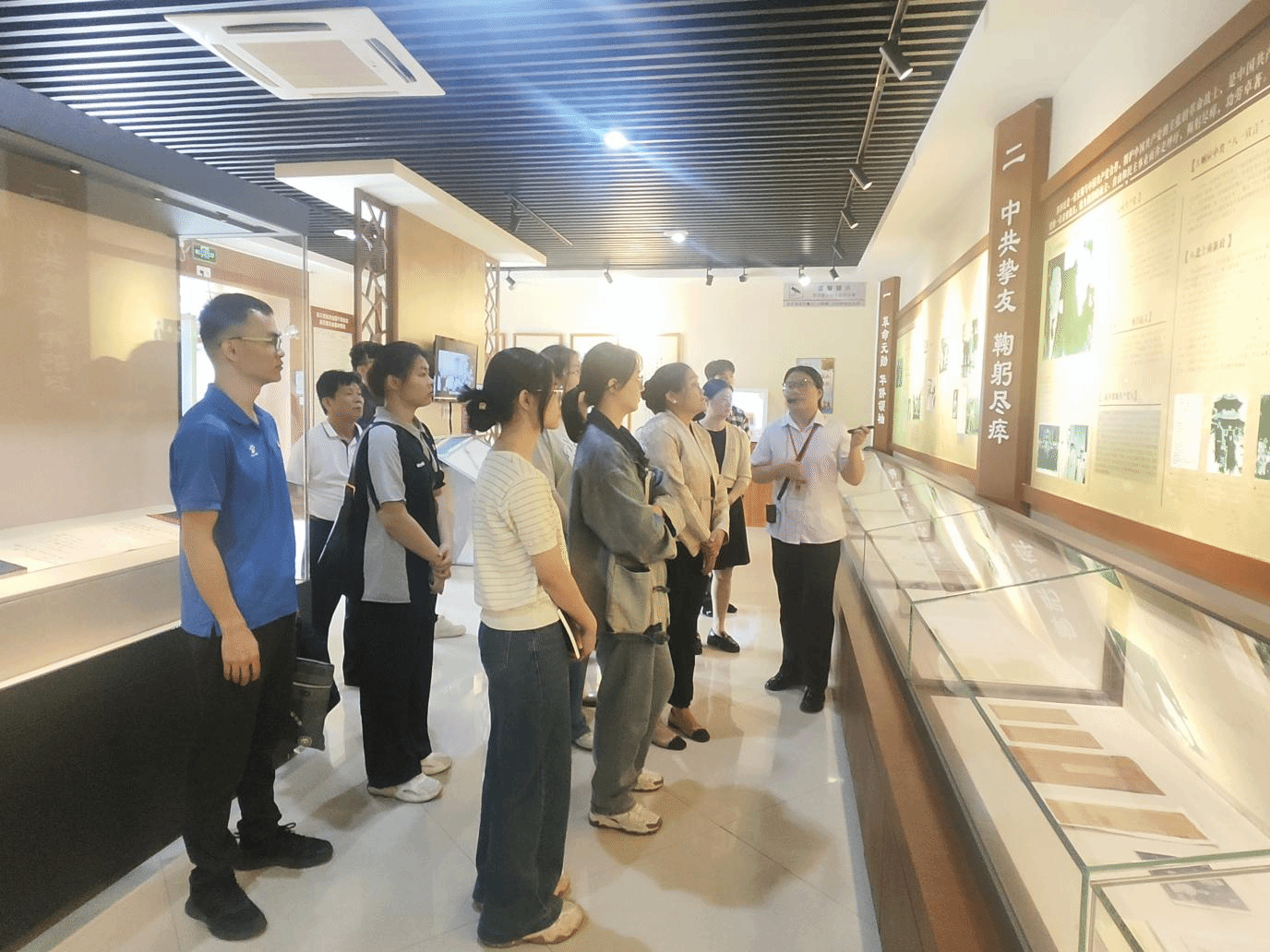 活动中,教师第一党支部组织合作区全体学生党员赴四会市博物馆开展红色研学。党员们通过参观学习,缅怀革命先驱的丰功伟绩,继承和弘扬革命先辈优良传统,进一步激发了自身的爱国主义精神。随后与四会市城中街道中心小学党总支开展深入贯彻中央八项规定精神学习教育主题党课。双方召开联学共建座谈会并进行了教育实习巡查。全体实习生党员分享了由红色研学及主题党课所带来的心教相映学习感悟,进一步坚定了立足三尺讲台和教育使命。