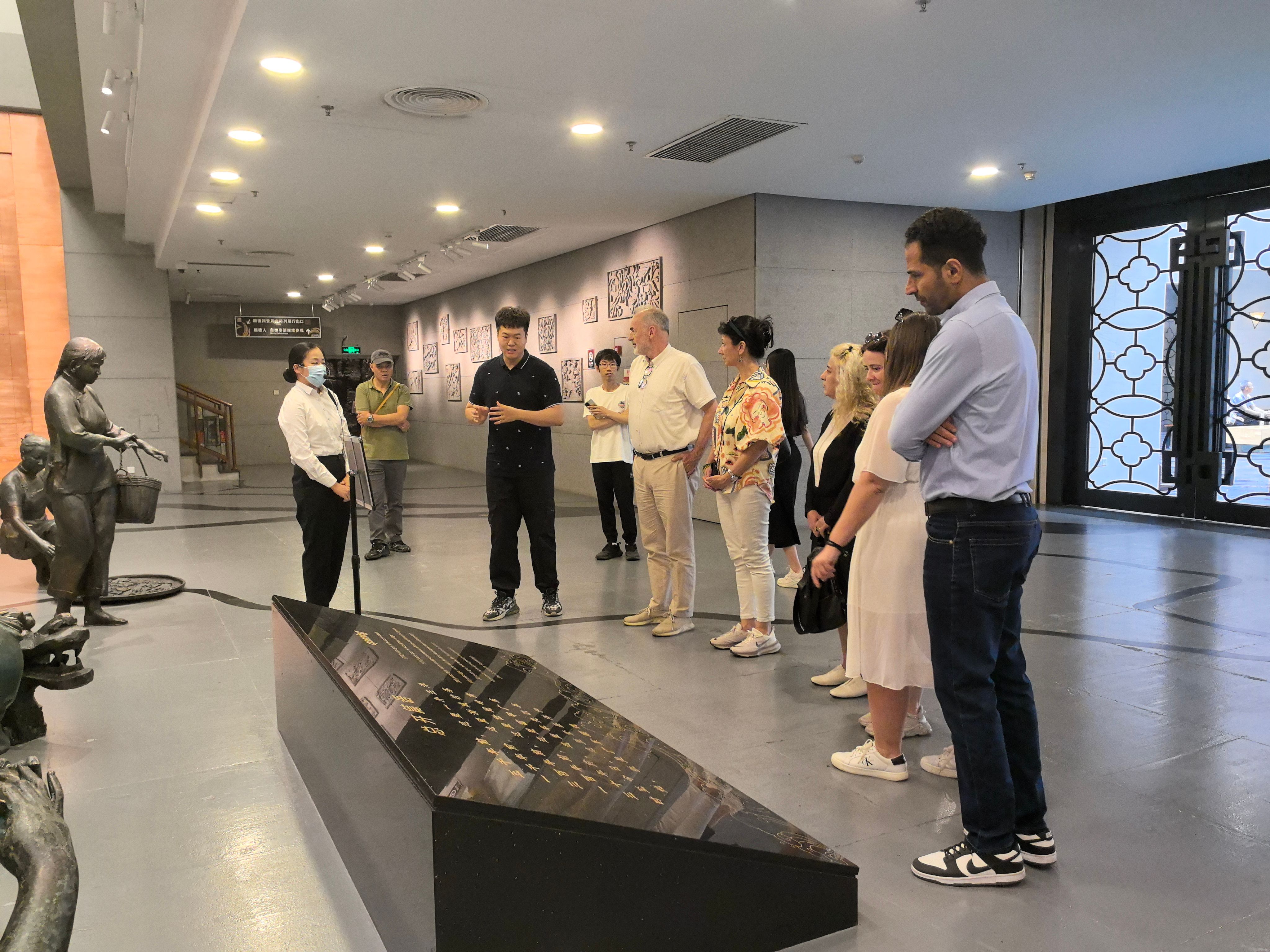 在顺德大良传统牛乳手工制作门店,外籍教师了解非遗美食大良牛乳的发展历史和制作过程,并亲身体验非遗牛乳制作技艺,感受一张张薄如蝉翼的牛乳片凝结着代代相传的匠心。在顺峰山,外教们驻足观赏具有岭南特色的湖光山色和古塔园林。午后,大家前往顺德博物馆和佛山旧村居改造的典范项目——伦教三洲678文化街,深入了解岭南文化名镇顺德的历史发展和风土人情。