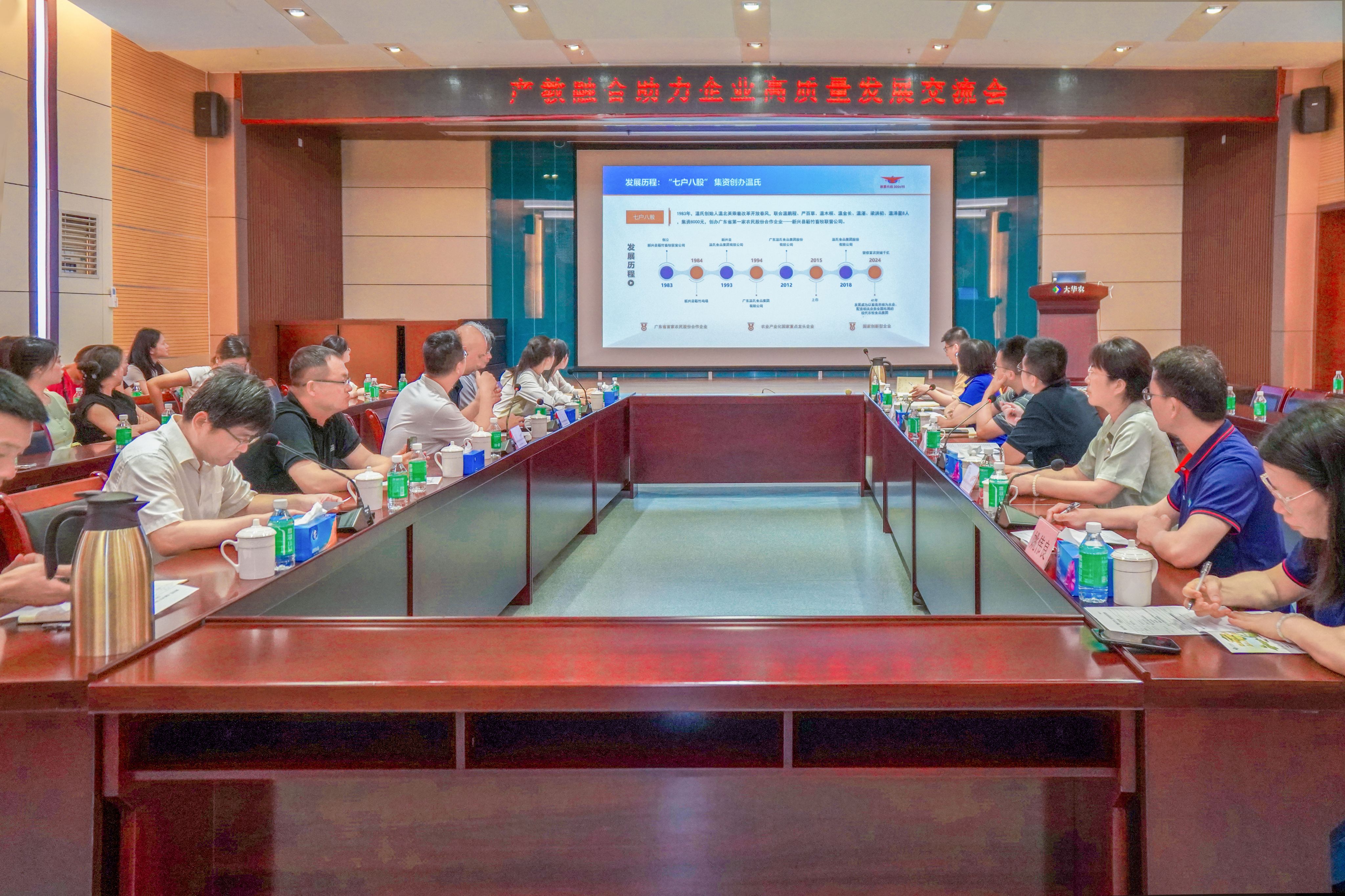 参访人员参观了西江实验室(岭南现代农业科学与技术广东省实验室肇庆分中心),深入了解了大华农的发展历程、发展现状、企业愿景、拳头产品生产流程等。随后,与企业有关负责人进行了座谈交流,并就人才培养与就业工作、科研项目联合攻关以及实习实践基地建设等进行了富有成效的交流探讨,为未来深度合作奠定了基础。