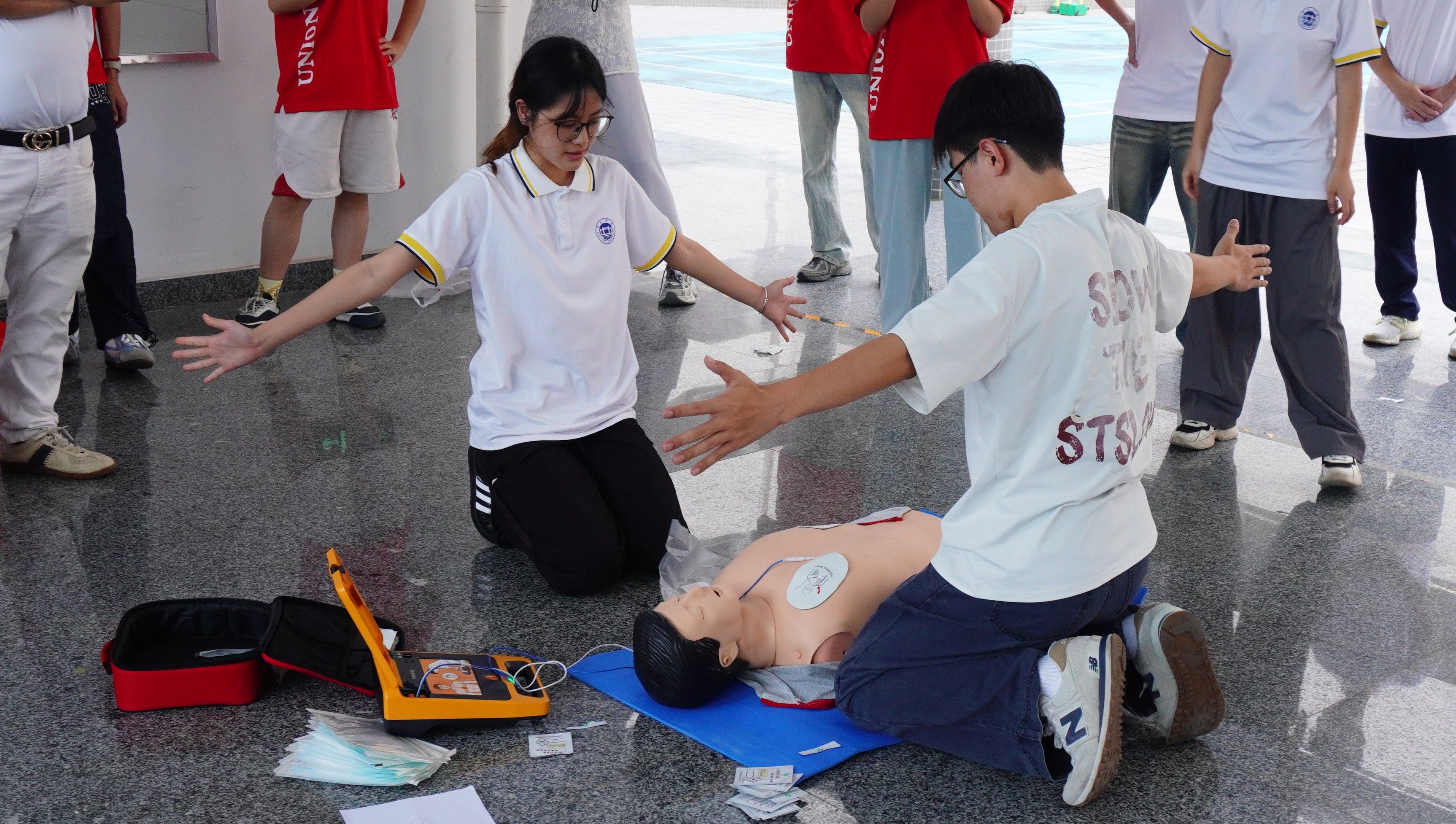 决赛环节,选手们率先在学习通平台限时答题,展现扎实的知识储备。实践操作环节,小组成员间默契配合完成心肺复苏操作,将理论转化为实战。评委团从操作规范、步骤完整性、团队协作等多维度综合评分,最终决出一等奖1组、二等奖2组、三等奖3组及优秀奖6组。