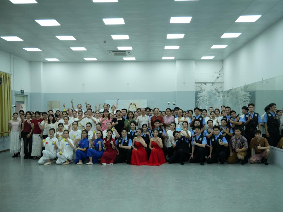舞剧《摘星星的妈妈》以王亚平出征太空并"摘星"归来的故事为主线,讲述了她在神舟十三号任务中完成中国女性首次出舱漫步的壮举,以及为女儿实现"摘星"承诺的感人故事,同时展现了航天精神的代代传承和对中国航天事业的美好展望。《无名碑》以缉毒前线真实的英雄事迹为蓝本,讲述了一位缉毒警察告别怀孕的妻子,带队深入毒贩老巢,在激烈搏斗中英勇牺牲,多年后他的儿子重新佩戴上父亲警号的感人经历。在雷洁老师带领下,同学们一遍遍排练打磨修改,最终呈现的作品赢得了在场观众的热烈掌声。