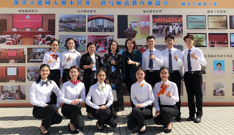 本网讯 10月26-28日,我校汉语言文学专业接受了教育部高等教育教学评估中心组织的第二级师范类专业认证进校考查。在认证期间,我校通过组织教师教育成果展向专家组展示了我校在招生宣传、教学制度、学生成长、师范生培养和就业引导等方面的相关工作。担任展板讲解员的学生均来自我校各二级学院的传统师范专业,他们经过认证基本知识、讲解内容及表达、讲解员礼仪等相关培训,以及数次的彩排,最终以最佳的精神面貌站在了专家组及校领导的面前。