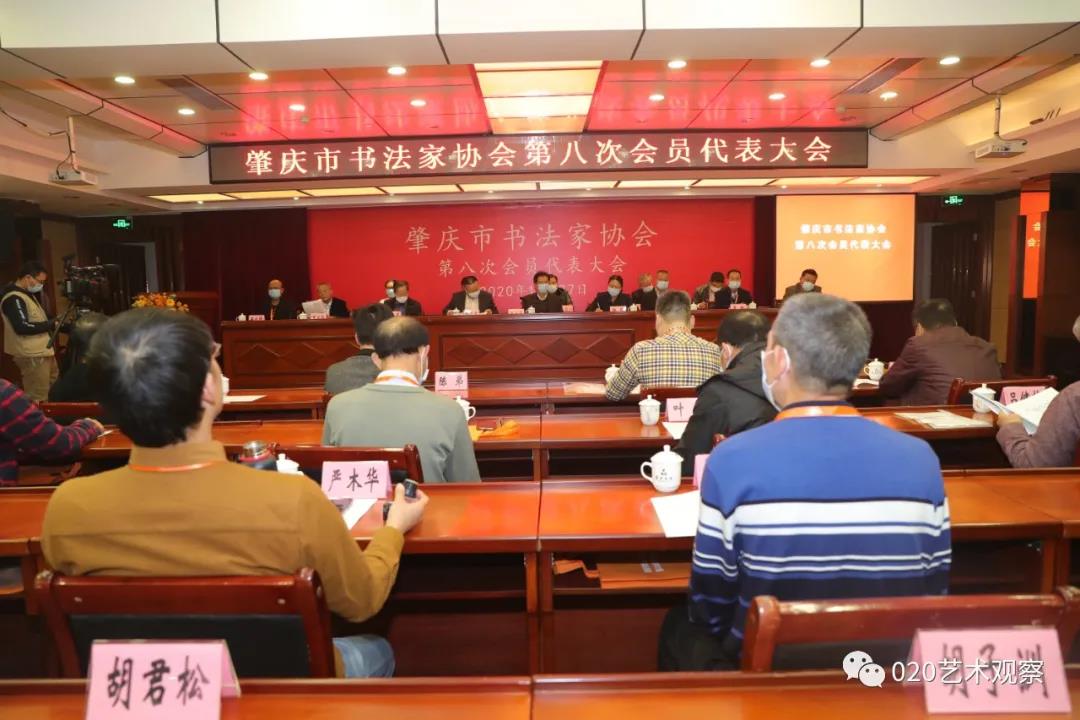 本网讯 12月27日下午,肇庆市书法家协会第八次会员代表大会在肇庆市端州区召开。肇庆市文联党组书记、主席周文浣出席并致辞。会议审议通过了《肇庆市书法家协会第七届理事会工作报告》、《肇庆市书法家协会章程》,选举产生了肇庆市书法家协会第八届理事会主席团。我校美术学院副院长李刚当选为市书协第八届理事会主席团主席;美术学院党委书记蔡卡宁等8人当选为副主席。