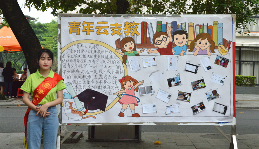 “青年云支教”宣传成果展的展板上,张贴着一帧帧有温度的照片:支教学子与山区小朋友视频通话,为他们讲解题目;课后用红色工具笔为小朋友批改作业,标注重点;写正能量寄语鼓舞小朋友们积极向上,认真学习。展板的宣传,彰显着山区小朋友的纯真、支教学子的无私奉献,也让砚园学子进一步了解到青年云支教的成果。