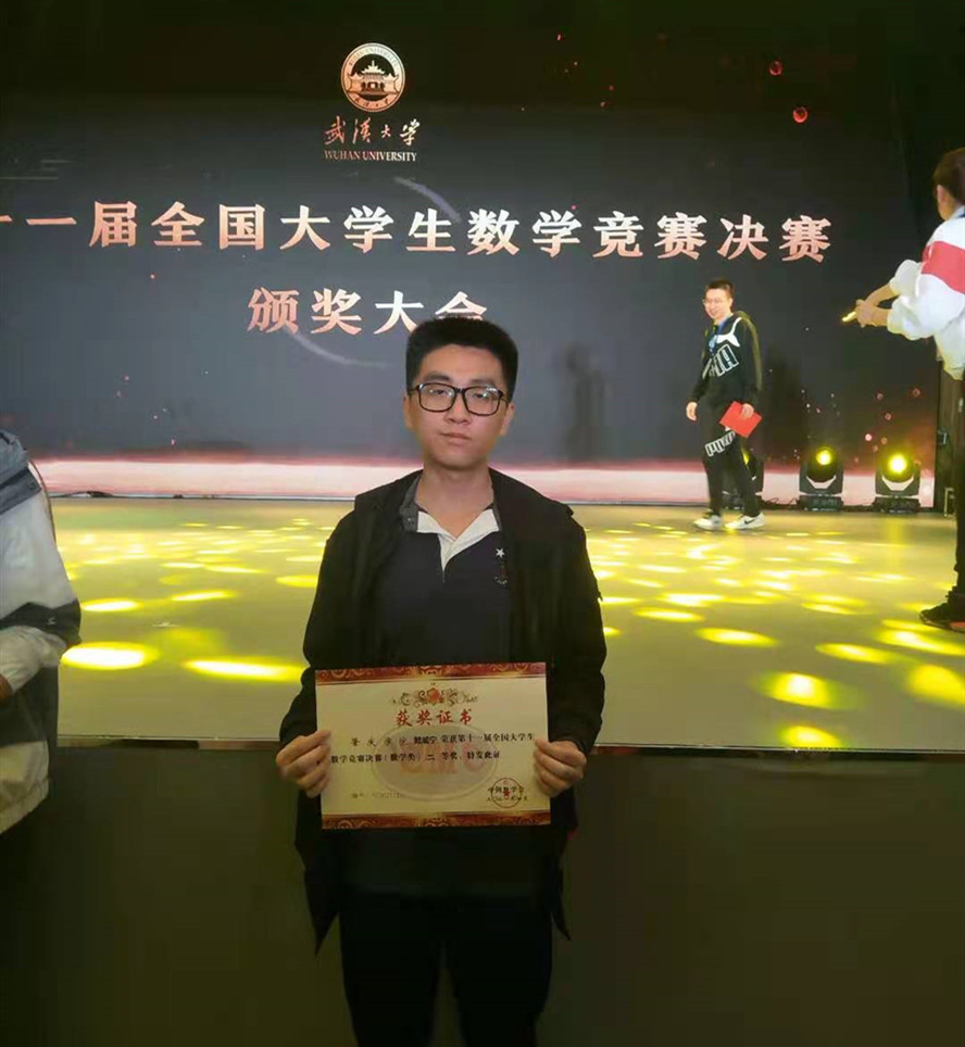 本网讯 4月17日,在武汉大学举行的第十一届全国大学生数学竞赛决赛揭晓,数学与统计学院2016级数学与应用数学专业赖威宁同学通过与全国各地高校的选手们同台竞技,荣获高年级组二等奖。这是数学院从2012年参加这项赛事以来首次入围决赛并获奖,实现了全国大赛历史性的突破。