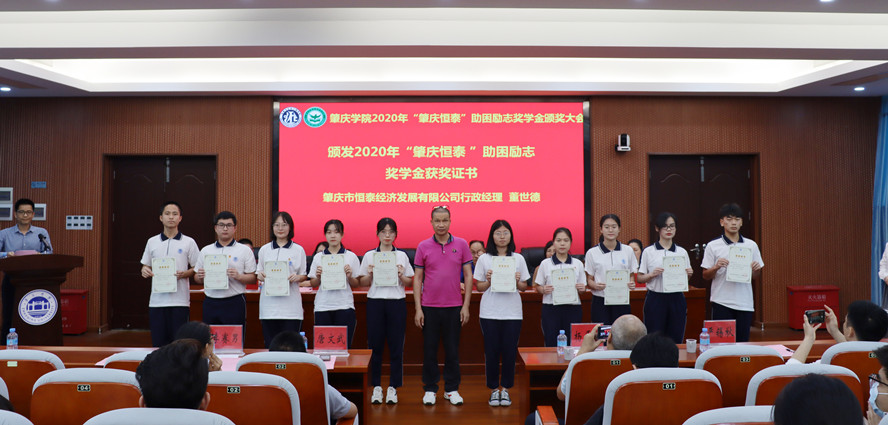 据悉,为深化校企合作、协同培育高素质应用型人才,支持社会公益事业,肇庆市恒泰经济发展有限公司从2018年起设立“肇庆恒泰”助困励志奖学金,奖助生科院和环化学院在校生中品学兼优的困难学子完成学业。三年来,生科院、环化学院先后有120人次获得资助,奖励金额计40万元。