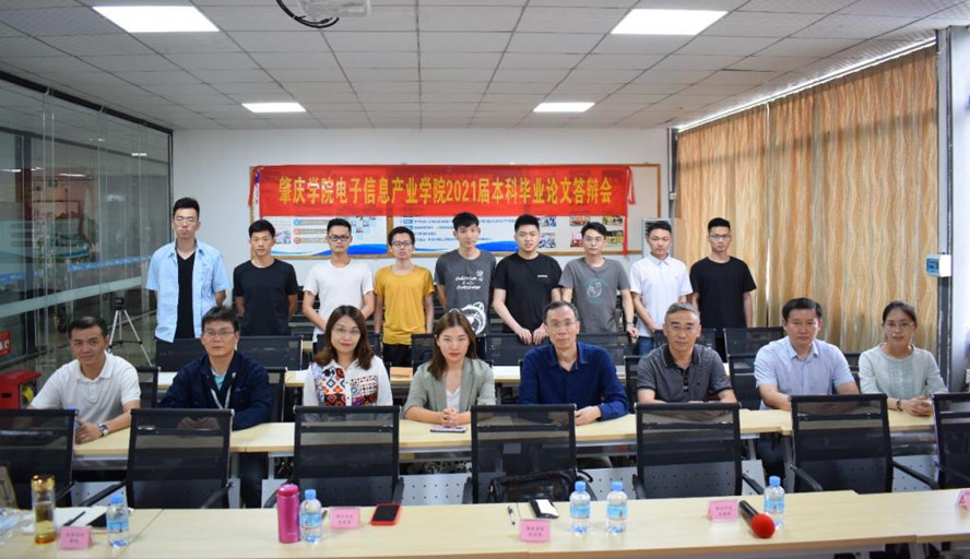 本网讯 近日,电子信息产业学院2021届本科毕业论文答辩会在肇庆晟辉电子科技有限公司举行,答辩组成员包括来自肇庆晟辉电子科技有限公司、广东风华邦科电子有限公司等肇庆市电子信息产业企业的部门领导、技术总监,以及电子与电气工程学院、电子信息产业学院院长陈英俊和电子信息产业学院主要负责人吴海涛、陈荣荣等。