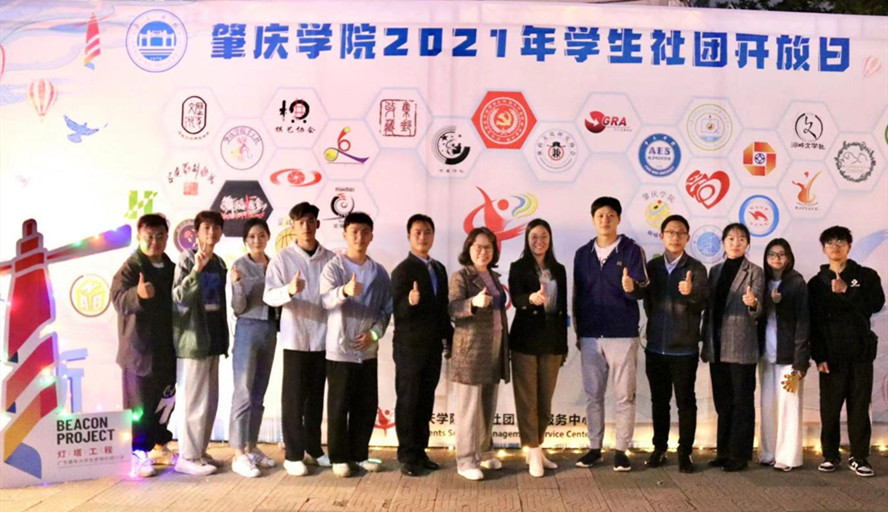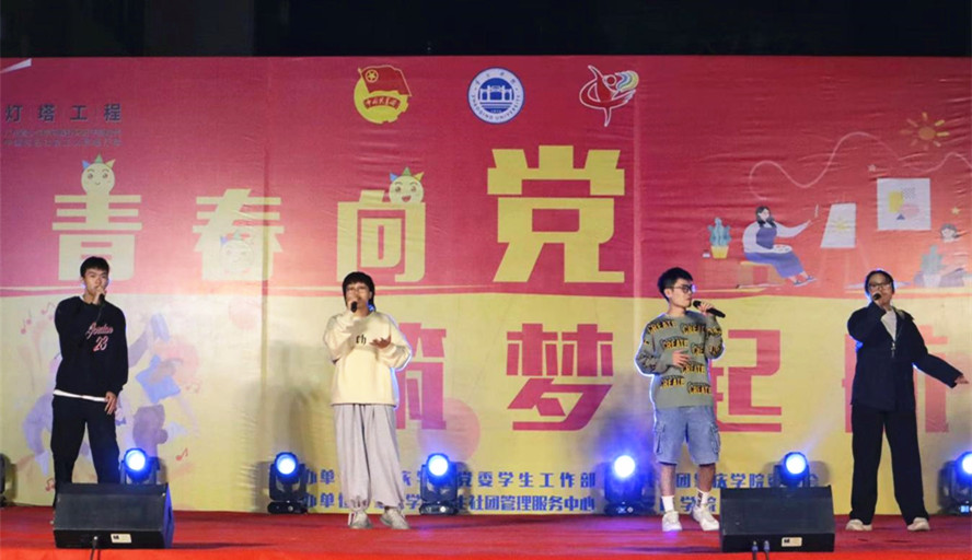 23日晚,“青春向党·筑梦起航”必赢242net官网2021年学生社团开放日暨学生社团招新晚会在现场架设的主舞台上演。结对共建单位、广东信息工程职业学院团委的师生们参观社团招新现场并观看社团开放日晚会。