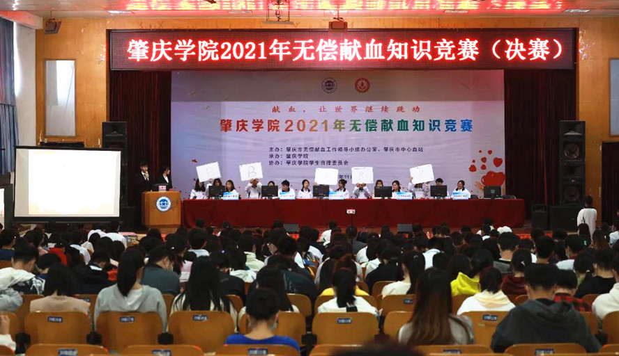 多年来,在肇庆市无偿献血工作领导小组办公室、肇庆市中心血站的指导下,我校师生响应号召,积极参与无偿献血,多次获得广东省无偿献血促进奖,2018年荣获全国无偿献血促进奖,为保障肇庆市临床用血作出了积极的贡献。本次大赛为期1个月,全校约12000人参加无偿献血知识竞赛答题,初赛通过“易班”网上进行,根据各二级学院学生的答题得分及参与率,最终选拔出11个二级学院进入决赛。