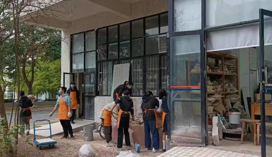 本网讯 近日,美术学院利用期末各班结课的契机,组织各班、各工作室同学开展集体劳动,对学院周边、办公室、实验室、工作室和课室等地段、场所的环境卫生进行深度清理。