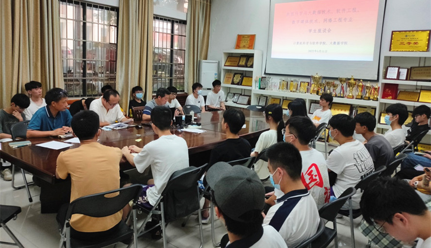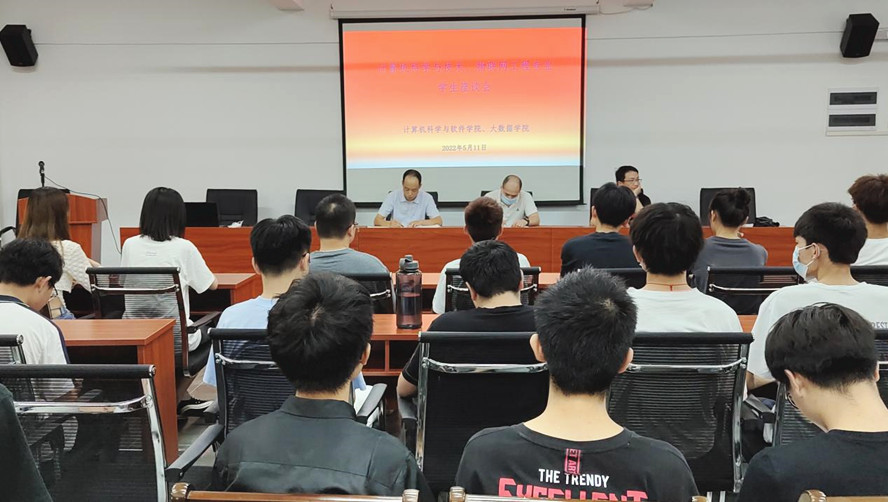 本网讯 5月11日,计算机科学与软件学院、大数据学院召开2021-2022学年度第二学期教学工作及学生工作意见征集学生座谈会。院长邵平、副院长王俊波、党委副书记陈彦雄等学院领导以及专业负责人、辅导员以及各专业近百名学生代表参加。