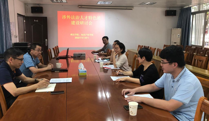 本网讯 5月20日,政法学院召开涉外法治人才特色班建设研讨会,深入学习贯彻习近平总书记关于涉外法治工作重要论述和十九届四中全会精神,更好维护国家主权、安全和人民群众利益,进一步发挥学院特色、优势和力量,扎实做好涉外法治人才培养工作。院长祁建平、副院长佘发勤出席,