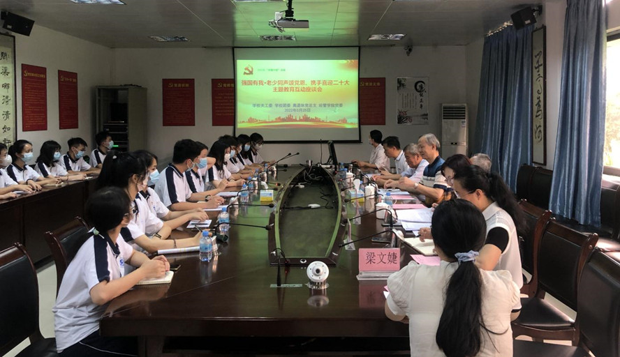 本网讯 5月25日,关工委牵头联合学校离退休党总支、学校团委和经济与管理学院联合举办“读懂中国”之“强国有我·老少同声颂党恩、携手喜迎二十大”主题教育座谈会,回顾中国共青团100年来坚定不移听党话、跟党走的青春历程,老少共话喜迎二十大。校关工委常务副主任蓝世光、校团委副书记(主持全面工作)马舒洁,经济与管理学院党委书记黎天宇出席。