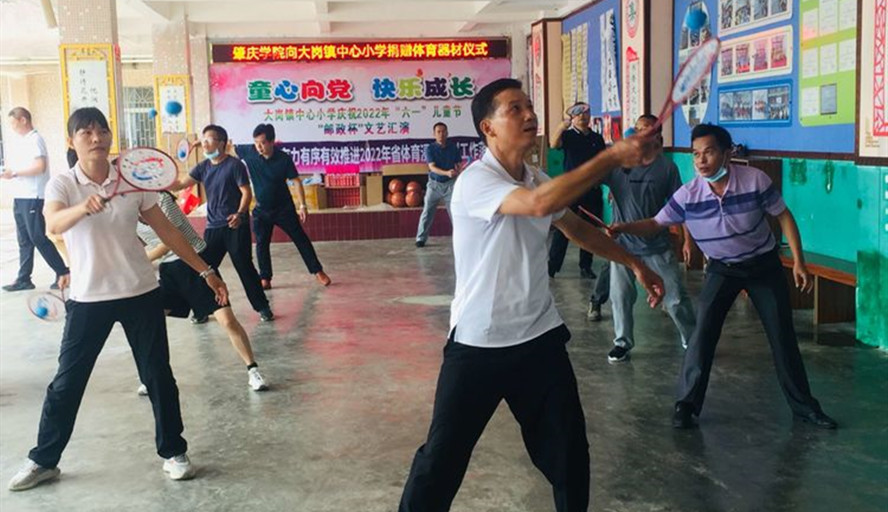 体育浸润行动计划活动旨在通过探索建立高校支持中小学体育协同发展机制,对薄弱地区中小学校在体育课程教学、实践活动、校园文化建设、教师队伍建设等四个方面提供服务,推进帮扶对象学校体育“一校一品”“一校多品”的特色发展。据悉,在前期调研沟通的基础上,必赢242net官网本次向怀集县大岗镇中心小学捐赠价值3万余元的体育器材,包括篮球200个、毽球1200个和柔力球运动100套。
