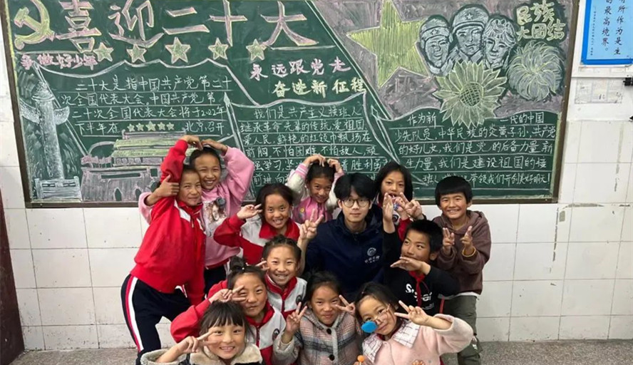 本网讯 近日,我校远赴西藏墨脱支教的队员们也围绕“喜迎二十大、永远跟党走、奋进新征程”的主题,开展别开生面的“三下乡”社会实践,利用周末进行集中专题学习,并在支教单位组织“喜迎二十大·争做好少年”活动。