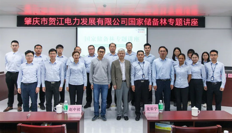 本网讯 为学习贯彻党的二十大精神,践行“绿水青山就是金山银山”的理念,近日,肇庆市贺江电力发展有限公司在肇庆国资大厦举办储备林专题讲座,邀请我校广东省环境健康与资源重点实验室主任、特聘教授袁国栋作《国家储备林基地建设的“双碳”馅饼》专题授课。贺电公司党委书记、董事长赵中初主持会议。