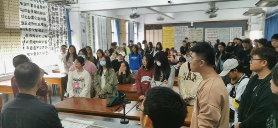 活动中,李刚、胡海鹏对学生作品在内容选题、规范用字、形式设计、用纸用墨、落款钤印等方面进行了指导。他们表示,要树立正确的书法艺术观念,坚实传统,大胆创新,在效法古今优秀书法艺术作品的基础上,努力创作出有自己个性和特色的好作品。