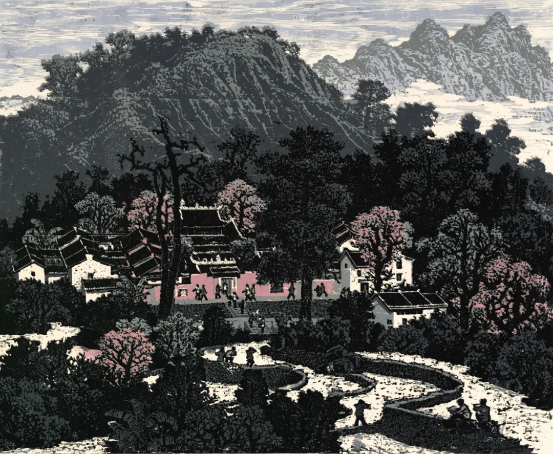 罗映球《嘉应风光》 套色木刻 60cm×50cm 1985年