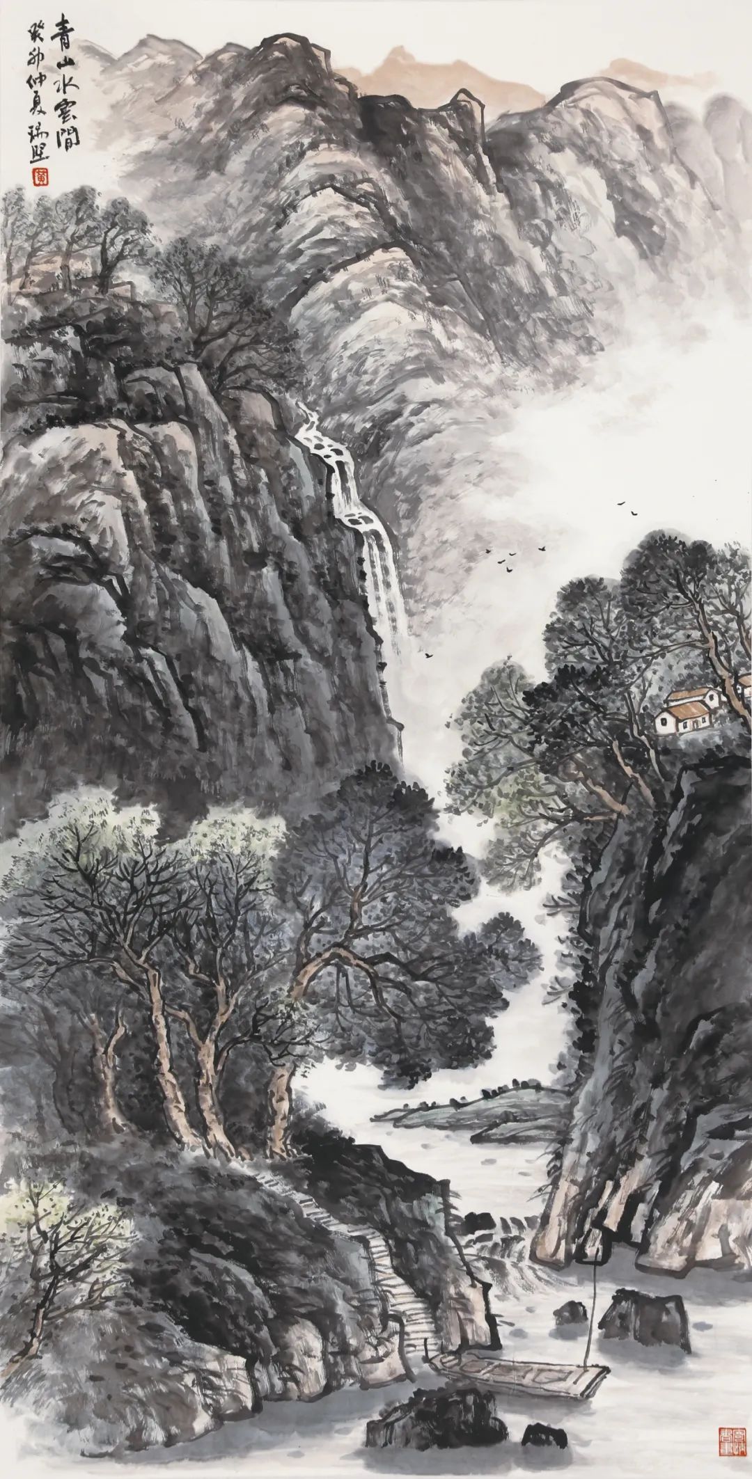 广发银行肇庆分行 黄瑞坚《青山水云间》 中国画(作品描绘山脉、河流、云彩在广阔天地下交积在一起的壮丽景象,表达作者在赞美大江河山、绿水青山的同时,对我们伟大祖国的热爱)