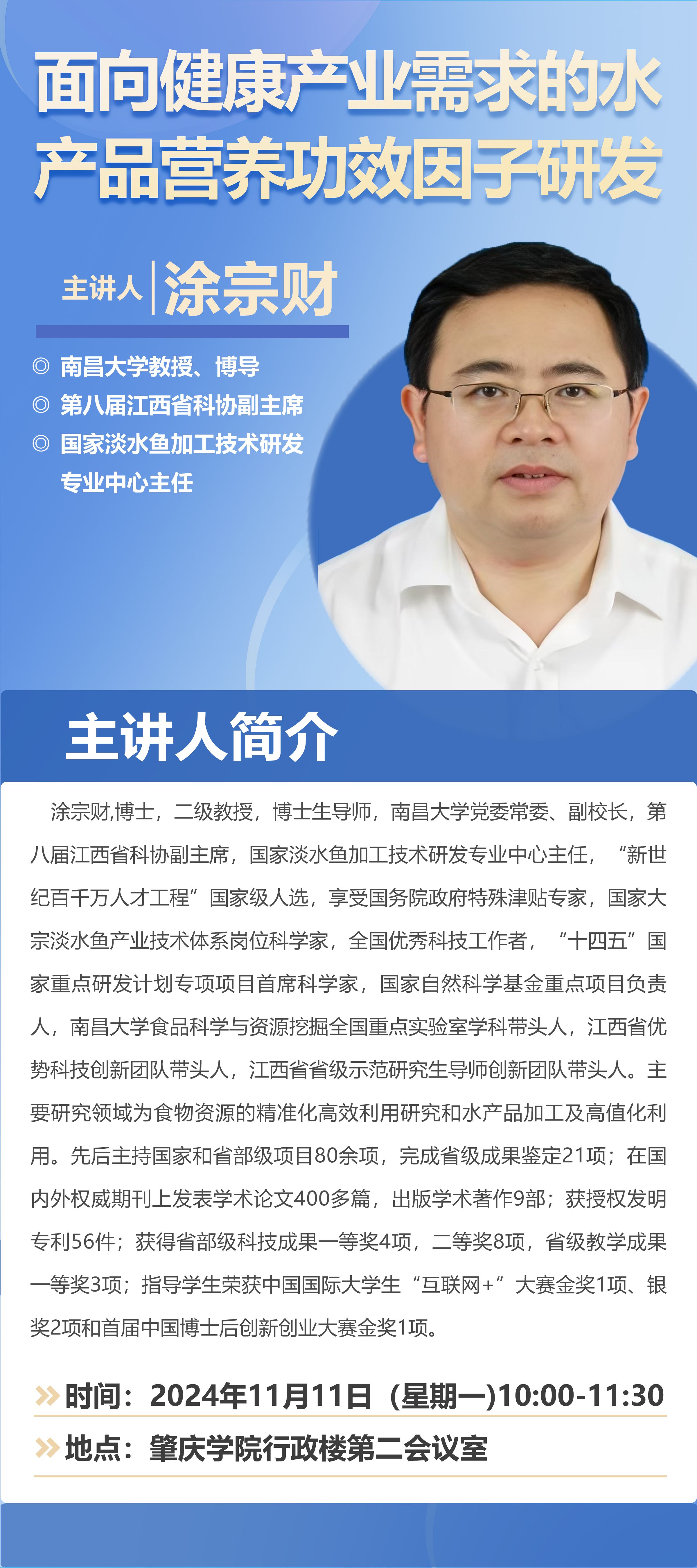 北岭大讲堂 | 面向健康产业需求的水产品营养功效因子研发