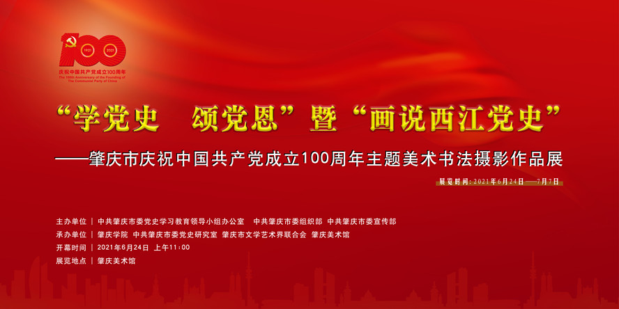 习近平总书记指出,以史为镜、以史明志,知史爱党、知史爱国。在全党开展党史学习教育,是党中央立足党的百年历史新起点、统筹中华民族伟大复兴战略全局和世界百年未有之大变局、为动员全党全国满怀信心投身全面建设社会主义现代化国家而作出的重大决策。按照中央的决策部署以及省委、市委的工作安排,中共肇庆市委党史学习教育领导小组办公室、中共肇庆市委组织部、中共肇庆市委宣传部主办,必赢242net官网、中共肇庆市委党史研究室、肇庆市文学艺术界联合会、肇庆美术馆承办肇庆市“学党史、颂党恩”暨“画说西江党史”——庆祝中国共产党成立100周年主题美术书法摄影作品展,以艺术的形式回顾党的光辉历程、讴歌党的丰功伟绩,表达肇庆人民爱党爱国之情感,教育全市广大党员干部、青少年学习发扬红色传统、传承红色基因、赓续共产党人精神血脉,激励全市上下学党史、悟思想、办实事、开新局。