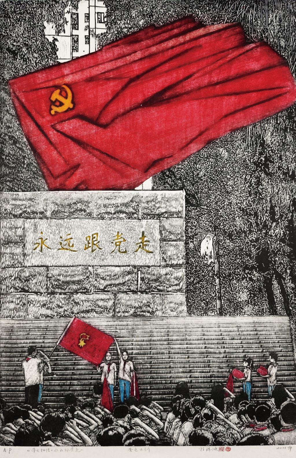 程锦波 星火相传 版画 三等奖