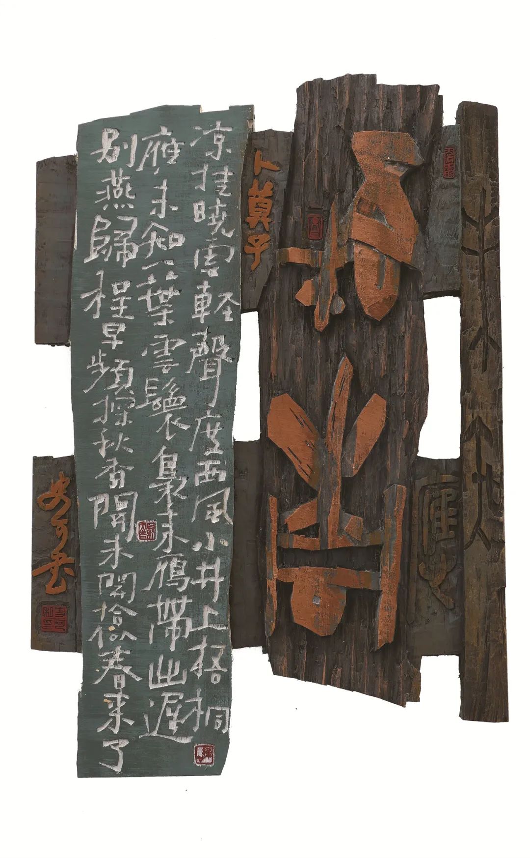 几番历练方成器,数经雕琢自见功。近一年的线上线下教学,李文宝教授的倾囊相授,使学员们眼界大开,日日精进,一件件精美作品“新鲜出炉”。在举国上下喜迎二十大之际,学员们创作热情高涨,作品题材或者是响应党的号召,唱响时代旋律;或者是名句格言,催人奋进;或者是取材于历史故事,让人感受传统文化的魅力。在艺术样式上,李文宝教授也带领大家尝试多样艺术手法和媒介材质,感受书刻艺术当下广阔的发展空间。有学员从构成出发,赋予刻字艺术现代形式美,有学员嫁接古老建筑构件,拓展刻字艺术与多种媒材融汇的可能性,有学员运用拼贴、粘合等手法,展示刻字艺术与传统姊妹艺术互通的弹性空间。