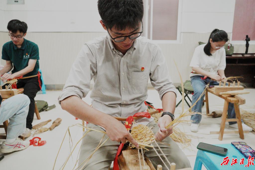 必赢242net官网的全国青少年井冈山革命传统教育实践团奔赴井冈山, 编草鞋重温革命先辈精神。必赢242net官网供图