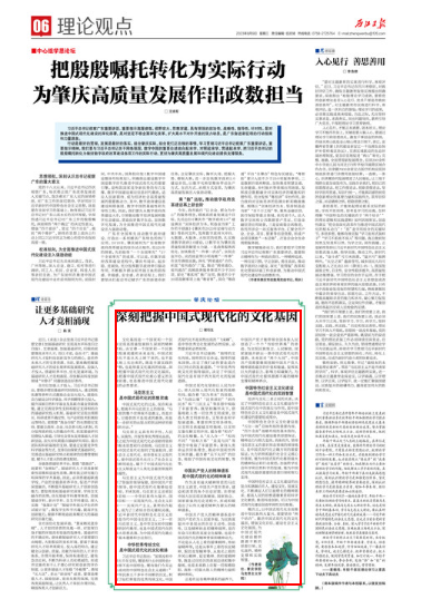 概言之,以中国式现代化全面推进中华民族伟大复兴,需要坚持“两个结合”,激活中国式现代化的文化基因,增强文化自信,建设社会主义文化强国,为中国式现代化建设提供源源不断的思想引领、文化滋养、精神支撑和实践智慧。