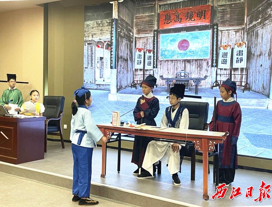 学员们用英文演绎《包公审丹凤朝阳砚冤案》。西江日报记者 陈明红 摄