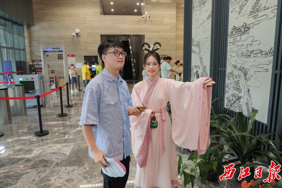 在演出现场记者看到,观众有相对的自由度,碰到的见到的所有事物很灵活,还可以和演员有自主的对话,得到特殊任务。在博物馆的时空里,两千多年的肇庆,历史故事、风流人物、文化遗产,像走马灯一样在观众面前掠过。这种戏剧形式让文物和文化活在我们的身边而不仅仅是“躺”在博物馆中,馆藏文物与历史文化历史的有机结合,以观众们喜闻乐见的方式进行创新性转化。