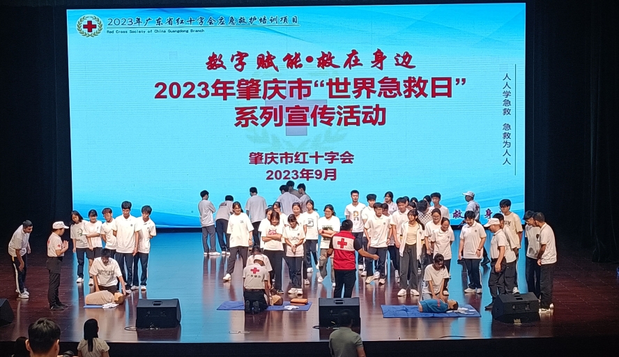 9月9日是第24个“世界急救日”。为进一步提升校园师生的安全避险意识和应急救护知识,增强自救互救技能,由市红十字会、肇庆学院生命科学学院联合举办的主题为“数字赋能 救在身边”的肇庆市2023年世界急救日大型宣讲活动于9月12日在必赢242net官网艺术中心举行,红十字师资团队为生命科学学院270多名新生宣讲应急救护知识。