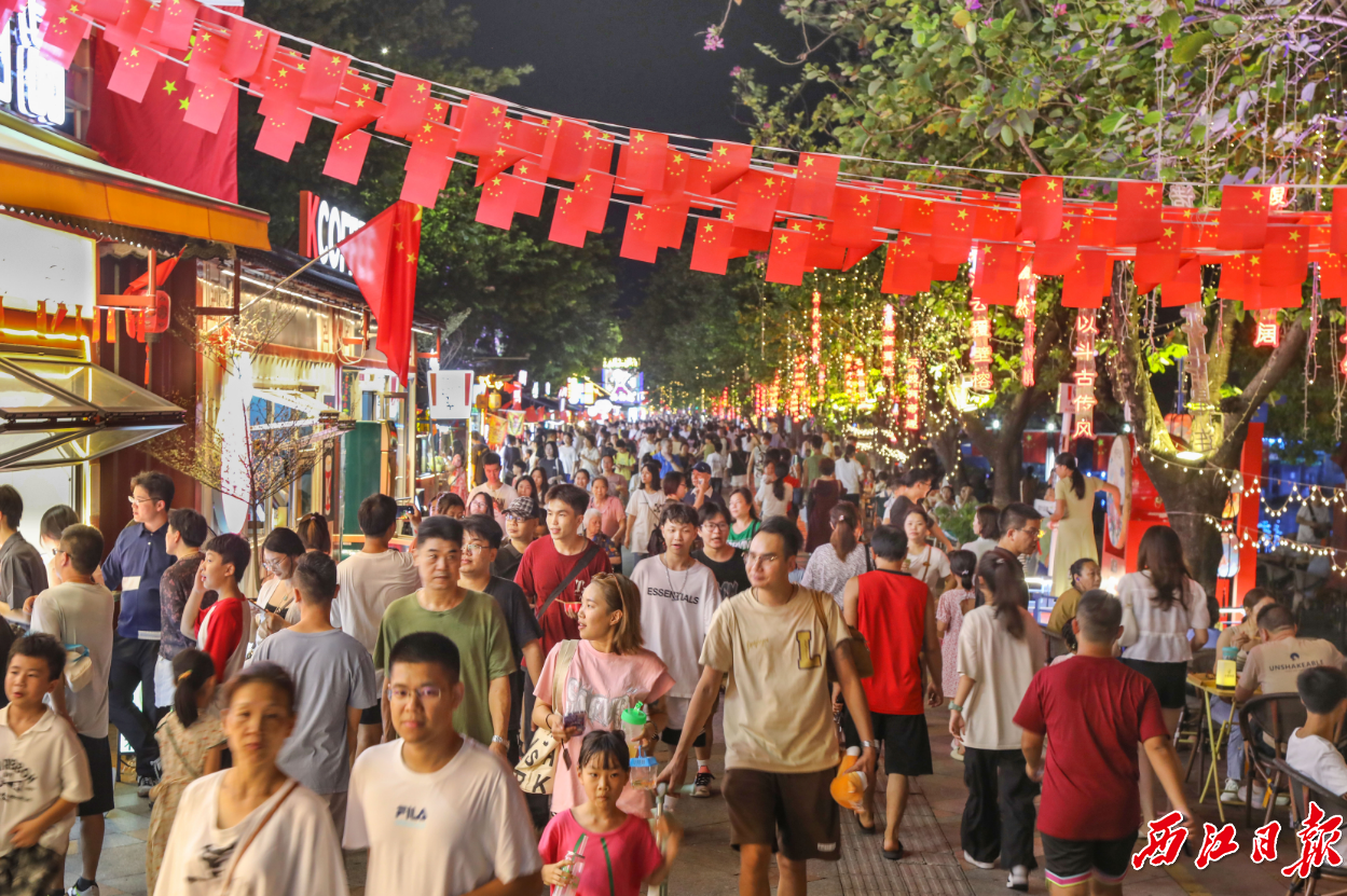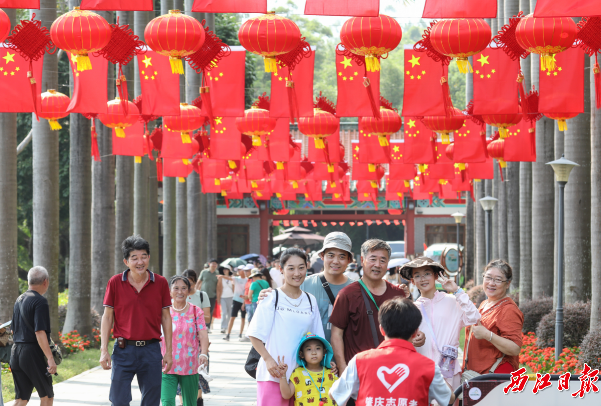 10月3日,七星岩紫荆西堤人潮涌动热闹非凡。西江日报记者 梁小明 摄