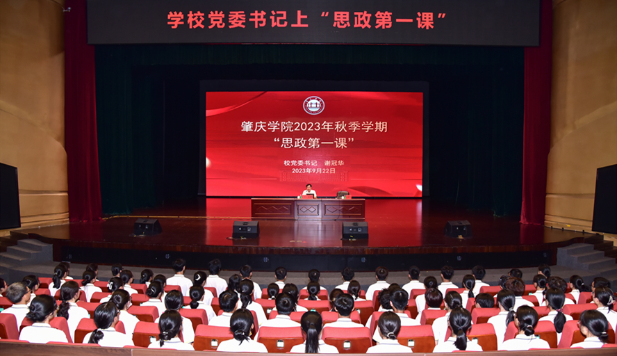 校党委书记谢冠华以《做担当民族复兴大任的时代新人》为题,向千名2023级学子讲授“思政第一课”。受访单位供图
