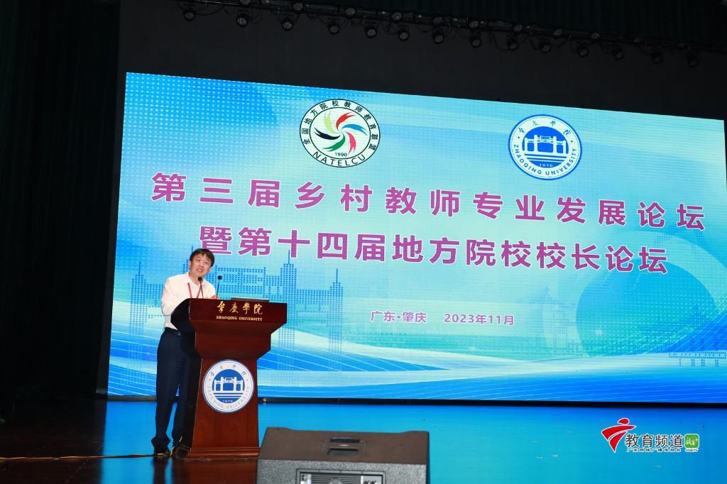 朱建华在致辞中代表广东省教育厅对论坛的召开表示热烈祝贺。他指出,广东省高度重视教师教育工作,深入实施“强师工程”和“教师教育振兴行动计划”,相继推出一系列重大改革举措,全面深化教师教育改革创新,取得新成效,积累新经验,值得交流和推广。乡村教师专业发展论坛和校长论坛的举办,搭建教师教育改革创新与高质量发展的交流平台,顺应深化教师教育改革发展方向,契合党的二十大强调的“科教兴国、人才强国、创新驱动发展”三大战略要义,必将对地方院校改革发展产生重要的促进作用。