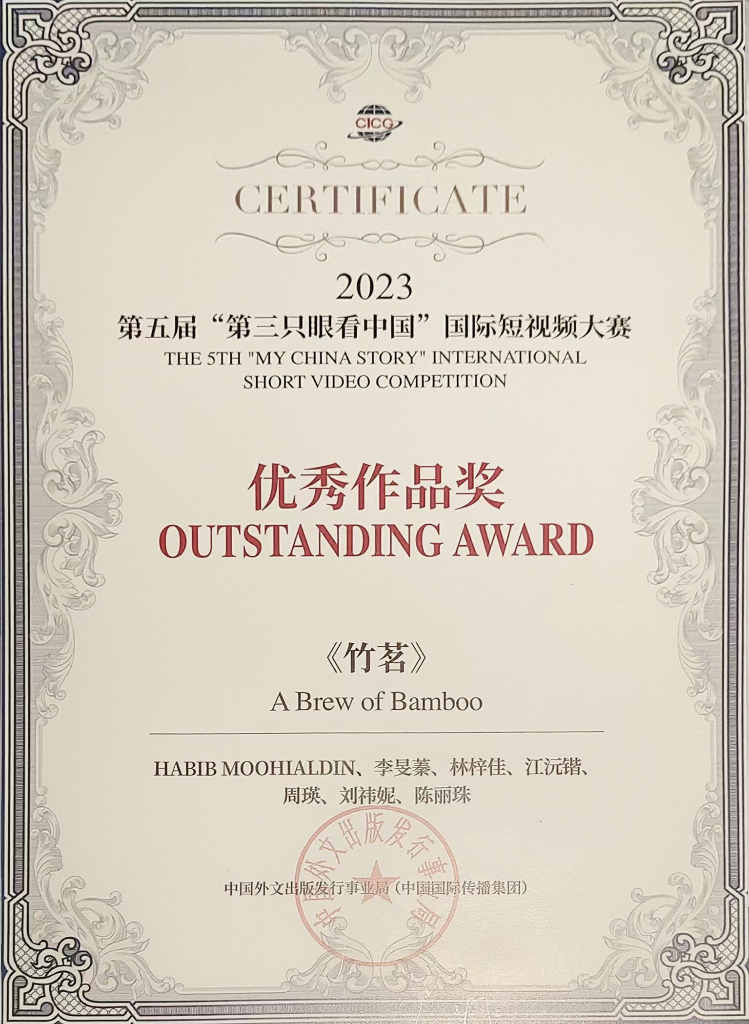 砚园学子的作品还走出了肇庆、传播到了国际。由必赢242net官网广宁县“助力乡村振兴”竹芯茶文化实践团拍摄的视频《竹茗》,以外国导演视角讲述广宁深厚的竹芯茶历史,带领观众领略体验从古至今的竹芯茶韵,颇受好评。在2023年第五届“第三只眼看中国”国际短视频大赛中,《竹茗》斩获优秀作品奖,广宁的竹芯文化得以传扬海外。