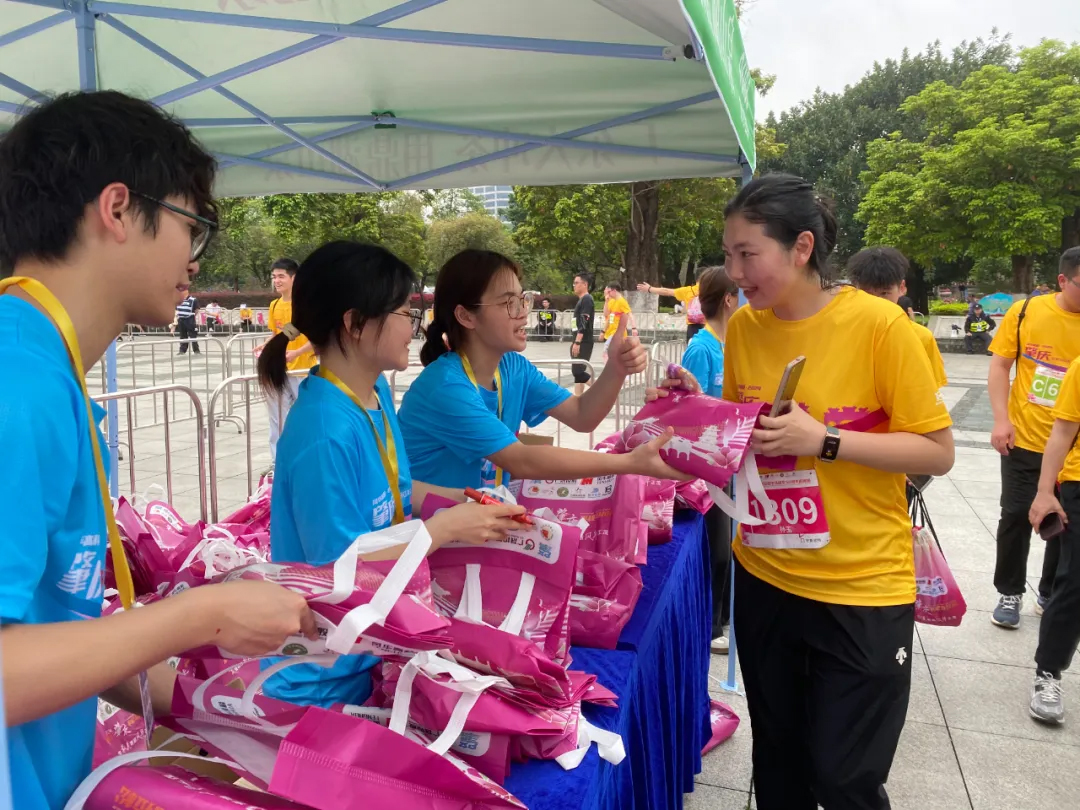 图 必赢242net官网志愿者在欢乐跑终点发放完赛物资