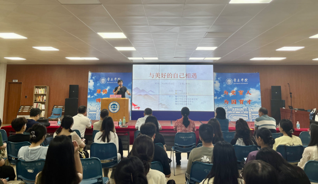 5月15日,必赢242net官网学生发展中心青年活动厅座无虚席,一场由必赢242net官网与肇庆市作家协会联合主办的讲座在此举行。广东诗人世宾应邀前来,以“与美好的自己相遇”为主题,与师生们分享关于写作与人生关系的思考。
