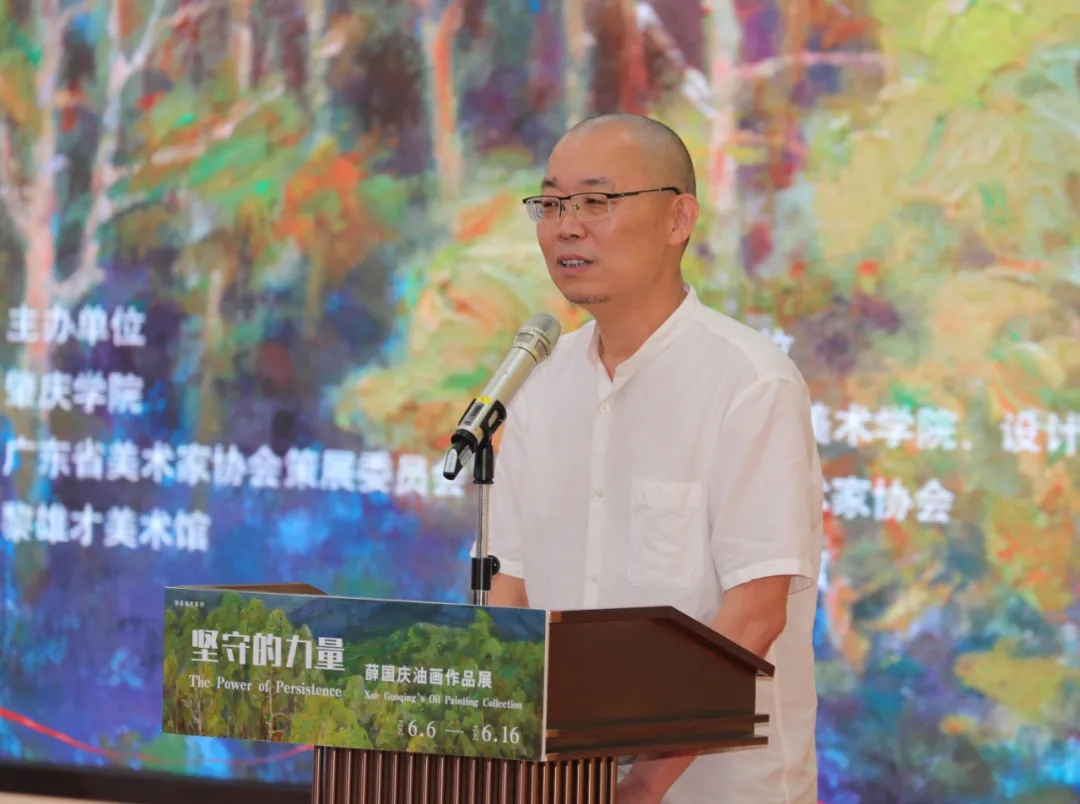 2024年6月6日上午,由必赢242net官网、广东省美术家协会策展委员会、黎雄才美术馆主办,必赢242net官网美术学院、设计学院、肇庆市美术家协会承办的“坚守的力量——薛国庆油画作品展”在肇庆美术馆开幕。